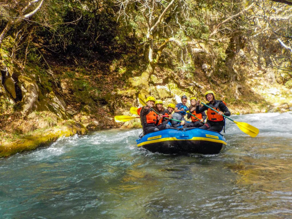 So, we decided to follow the steps of Zeus and participate on a rafting trip in the most popular rafting destination of Greece. The descent started from the bridge of Atsicholos where our river guides prepared us for the activity. As we paddled through class 2 rapids we enjoyed the lush vegetation and the continuous action. Arc bridges and springs of water, coming out from tree roots, welcoming us along the way. After 3km we reached Alfeios river, which is the largest one in Peloponnese. Alfeios is calm in the beginning but don’t get mistaken, exciting class 3 rapids will soon follow and get your adrenaline pumping. At the end of the trip our guides had a wonderful surprise. After a small stroll in thick vegetation of a creek we visited a 17m waterfall. There we stood wondering how nature can be the most imaginative sculptor of all!