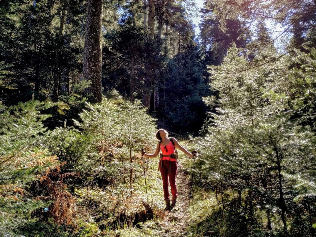 The first hike was the most strenuous one. We hiked the section three of the Menalon trail, a stretch via Zigovisti, across the mountain pass Bilani to the remote village of Elati. Walking for 15 Km, deep in the fir covered uplands of mount Menalon, we found the “heart” of the mountain. For the whole hike we were surrounded by forest, quite unique and rare to find in the Greek mountains. But apart from the beautiful landscape the trail has also cultural value. You get to visit two quite distant villages Zigovosti and Elati, the chapel of Agios Georgios and the immense Vlachika Plateau where shepherds, a couple decades ago, used to graze their animals.