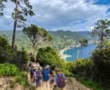 Our hike follows a scenic trail climbing above the sea toward Monterosso al Mare, the largest of the five villages and our base for the next three nights. Along the way, panoramic views open over the rugged coastline and the colorful villages perched between cliffs and sea. By late afternoon, we arrive in Monterosso, where the pace softens and, as the day visitors depart, a quieter side of the Cinque Terre begins to emerge.